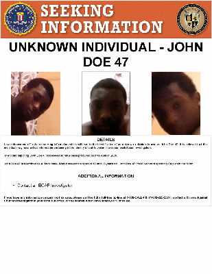 Law enforcement officials are seeking information which will lead to the identification of an unknown individual known as John Doe 47. It is believed that this individual may have critical information pertaining to the identity of a child victim in a sexual exploitation investigation.