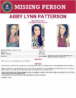 The Charlotte Division of the FBI and the Lumberton Police Department in North Carolina are seeking assistance from the public to locate Abby Lynn Patterson.