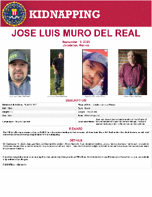 The FBI is offering a reward of up to $3,000 for information leading to the recovery of Jose Luis Muro Del Real and/or the identification, arrest, and conviction of the person(s) responsible for his kidnapping.
