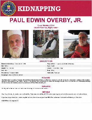 Paul Edwin Overby, Jr. was last seen in Khost City, Afghanistan, in mid-May of 2014, while conducting research in furtherance of a new self-authored book.