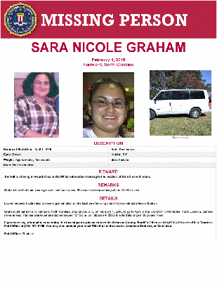 The FBI is offering a reward of up to $5,000 for information leading to the location of Sara Nicole Graham.