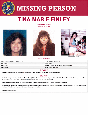 Tina Marie Finley, a member of the Coeur d'Alene (Idaho) Tribe of Indians, has been missing since March 8, 1988. She was last seen in Plummer, Idaho, and was reported missing days later. The investigation suggests she may have been the victim of foul play.