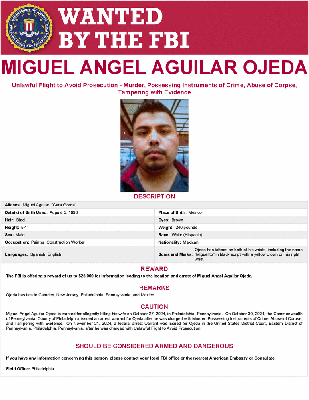 The FBI is offering a reward of up to $25,000 for information leading to the location and arrest of Miguel Angel Aguilar Ojeda.