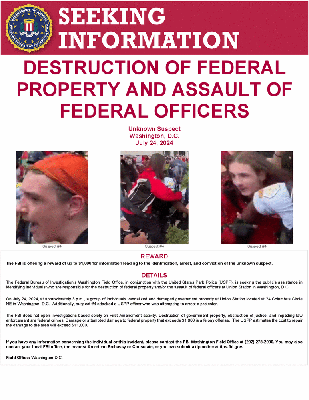 The Federal Bureau of Investigation's Washington Field Office, in conjunction with the United States Park Police (USPP), is seeking the public's assistance in identifying individuals who are responsible for the destruction of federal property and/or the assault of federal officers at Union Station in Washington, D.C.