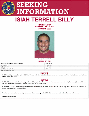 The FBI's Albuquerque Field Office, Farmington Resident Agency in New Mexico is seeking the public's assistance in finding the person(s) responsible for the death of Isiah Terrell Billy, who lived in Shiprock, New Mexico, on the Navajo Nation.