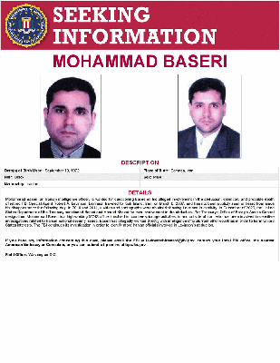 Mohammad Baseri, an Iranian intelligence officer, is wanted for questioning based on his alleged involvement in the abduction, detention, and probable death of retired FBI Special Agent Robert A. Levinson. Levinson traveled to Kish Island, Iran, on March 8, 2007, and has not been publicly seen or heard from since his disappearance the following day. In 2010 and 2011, a video and photographs were obtained showing Levinson in captivity. In December of 2020, the United States Department of the Treasury sanctioned Baseri and Ahmad Khazai for their involvement in the abduction. Per Treasury’s Office of Foreign Assets Control designation, Mohammad Baseri is a high-ranking MOIS officer involved in counterespionage activities, in and outside of Iran, who has been involved in sensitive investigations related to Iranian national security issues. Baseri has allegedly worked directly with intelligence officials from other countries in order to harm United States interests. The FBI continues its investigation in order to identify more Iranian officials involved in Levinson’s abduction.