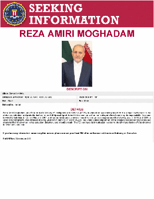 Reza Amiri Moghadam, an official of Iran’s Ministry of Intelligence and Security (MOIS), is wanted for questioning based on his alleged involvement in the abduction, detention, and probable death of retired FBI Special Agent Robert A. Levinson, as well as Iran’s alleged efforts to cover up its responsibility. Levinson traveled to Kish Island, Iran, on March 8, 2007, and has not been publicly seen or heard from since his disappearance the following day. In 2010 and 2011, a video and photographs were obtained showing Levinson in captivity. In March of 2025, the United States Department of the Treasury designated Moghadam and others for their involvement in the abduction, detention, and probable death. The FBI continues its investigation in order to identify more Iranian officials involved in Levinson’s abduction.