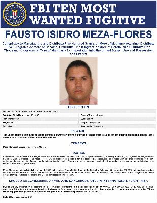 Fausto Isidro Meza-Flores is the alleged leader of the Meza-Flores Transnational Criminal Organization (TCO), a heavily armed, major drug-trafficking organization based in Sinaloa, Mexico. The Meza-Flores TCO is allegedly responsible for the possession, distribution, and importation of large quantities of heroin, methamphetamine, cocaine, fentanyl, and marijuana into the United States, and has predominately controlled drug production, transportation, and distribution in several locations throughout Mexico.