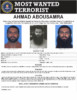 The FBI is offering a reward of up to $50,000 for information leading directly to the capture and return of Ahmad Abousamra to the United States.