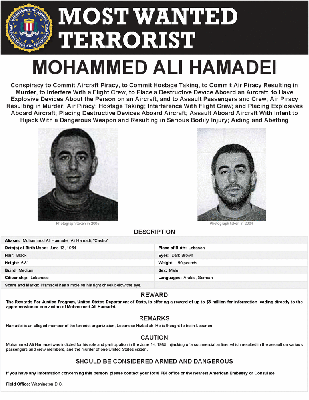 Hamadei is an alleged member of the terrorist organization, Lebanese Hizballah. He is thought to be in Lebanon.